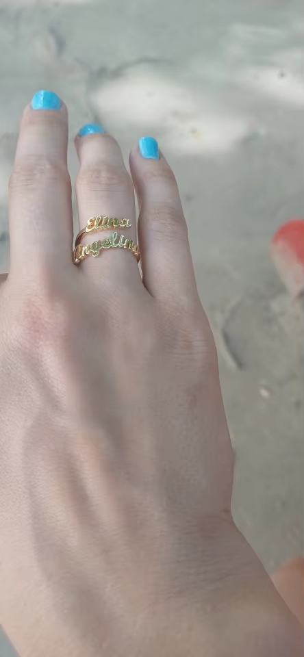 The size of the ring is perfect, and the names are engraved with care. The jewelry fits well on the finger, I am very satisfied!